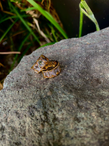 14k Gold Filled Huggie Hoops adorned with 4 CZ square stones.